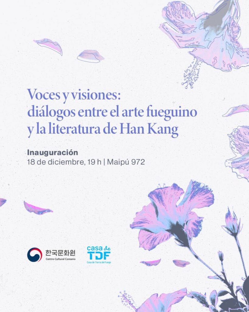 18 Oct. 2023.- El Centro Cultural Coreano inaugura la exposición titulada “Voces y visiones: diálogos entre el arte fueguino y la literatura de Han Kang”, con el apoyo de la Casa de Tierra del Fuego. La apertura será el miércoles 18 de diciembre a las 19 horas en la sede del CCC, Maipú 972, Ciudad Autónoma de Buenos Aires.