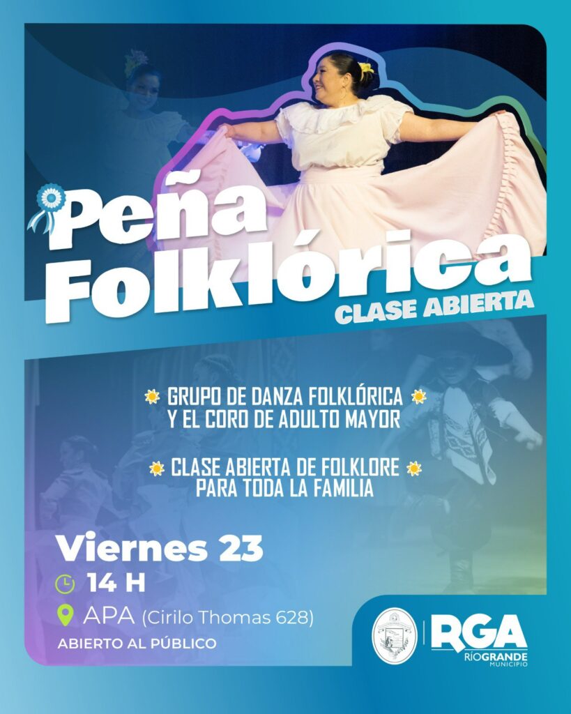 22 May. 2025.- Este viernes 23 de mayo a las 14 horas en APA (Cirilo Thomas 628), el Municipio de Río Grande, a través de la Secretaria de Gestión Ciudadana, llevará adelante una peña folklórica destinada a fortalecer la identidad y el encuentro comunitario. La propuesta es abierta a toda la comunidad.