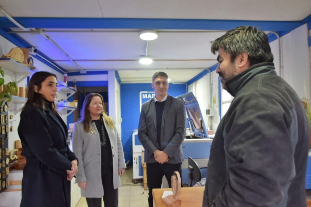 En representación del Municipio de Río Grande, el secretario de Desarrollo Productivo, Facundo Armas junto a la concejala Daiana Freiberger y la directora de Desarrollo Local, Ornela Antonio, conoció el trabajo que realizan los emprendimientos Carpintería Madril, 7nine, Atama Alimentos y MiPyMEs de la ciudad de Ushuaia.