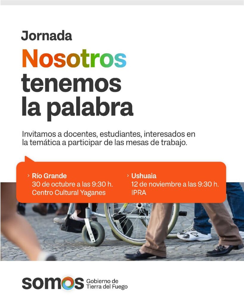 28 Octubre 2025.- En el marco del Mes de la Educación Inclusiva, el Ministerio de Educación de Tierra del Fuego, AeIAS llevará adelante la Jornada “Nosotros tenemos la palabra”, una instancia destinada al público en general para dialogar sobre las políticas de inclusión, donde pondrán voz docentes y estudiantes de instituciones de la modalidad de educación especial y personas con discapacidad.