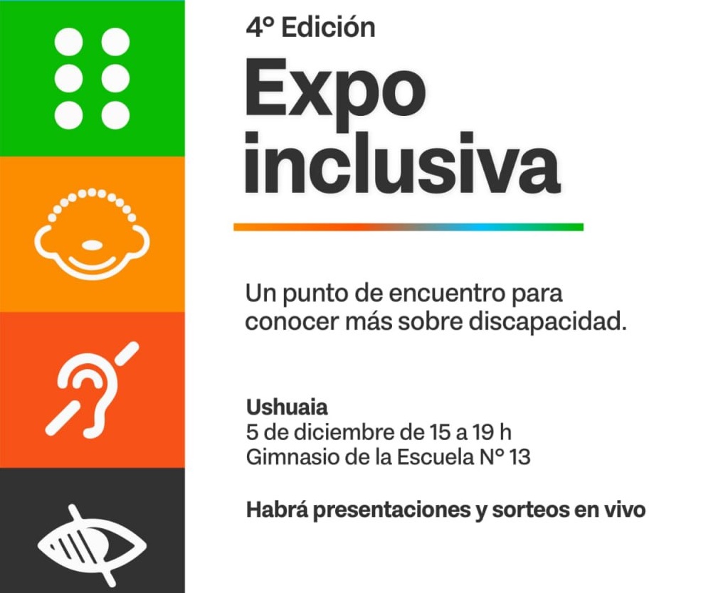 1 Diciembre 2025.- El Gobierno de Tierra del Fuego AIAS, a través de la Secretaría Provincial de Discapacidad, invita a la comunidad a participar de la «4ta EXPO INCLUSIVA 2025», encuentro anual que reúne al Estado provincial, las organizaciones sociales y al sector privado comprometidos con la promoción y el fortalecimiento de los derechos de las personas con discapacidad.