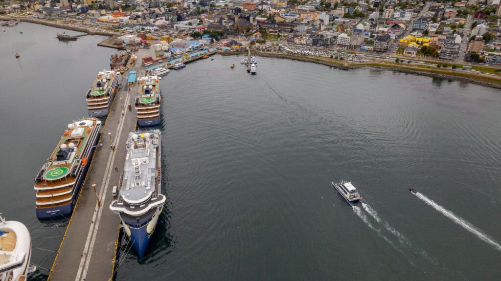 29 Diciembre 2025.- El Puerto de Ushuaia operó durante el fin de semana una de las jornadas más exigentes de la temporada de cruceros, con la atención simultánea y escalonada de 16 embarcaciones internacionales en un período inferior a 24 horas, consolidando la capacidad operativa de Tierra del Fuego dentro del circuito marítimo internacional.